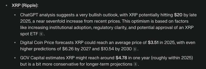 Perplexity แพลตฟอร์ม AI ขั้นสูง ได้เปิดเผยการคาดการณ์ราคาเหรียญ Altcoin ชั้นนำ โดยชี้ว่าอาจพุ่งสู่ระดับสูงสุดใหม่เป็นประวัติการณ์ในช่วงครึ่งหลังของปี 2025 ซึ่งได้รับแรงหนุนจากการพุ่งขึ้นของราคา Bitcoin อย่างน่าประทับใจ โดยเฉพาะอย่างยิ่งสำหรับเหรียญ XRP ที่นักลงทุนจับตามองเป็นพิเศษ เนื่องจาก AI คาดการณ์ว่าราคา XRP มีศักยภาพในการเติบโตอย่างมหาศาล ซึ่งจุดประกายความหวังให้กับนักลงทุนและชุมชนผู้ถือเหรียญ XRP ทั่วโลก