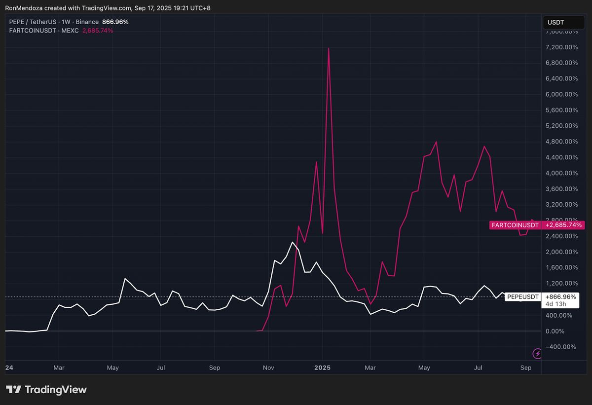 ในขณะที่มูลค่าตลาดรวมของเหรียญมีมกำลังไต่ระดับกลับไปสู่ 1 แสนล้านดอลลาร์ จึงมีเหตุผลให้เชื่อได้ว่าเหรียญที่เป็นที่ยอมรับอย่าง PEPE และ FARTCOIN ซึ่งได้รับการสนับสนุนจากคอมมูนิตี้ที่เหนียวแน่น จะก้าวขึ้นมาเป็นผู้นำในตลาดกระทิงรอบถัดไป พร้อมกับโทเค็นดาวรุ่งอย่าง MemeCore (M)