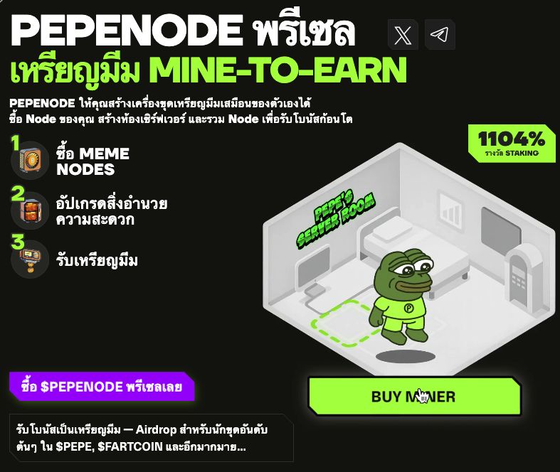 โอกาสทองวันสุดท้าย! ขุดเหรียญ PepeNode ก่อนปิด ICO