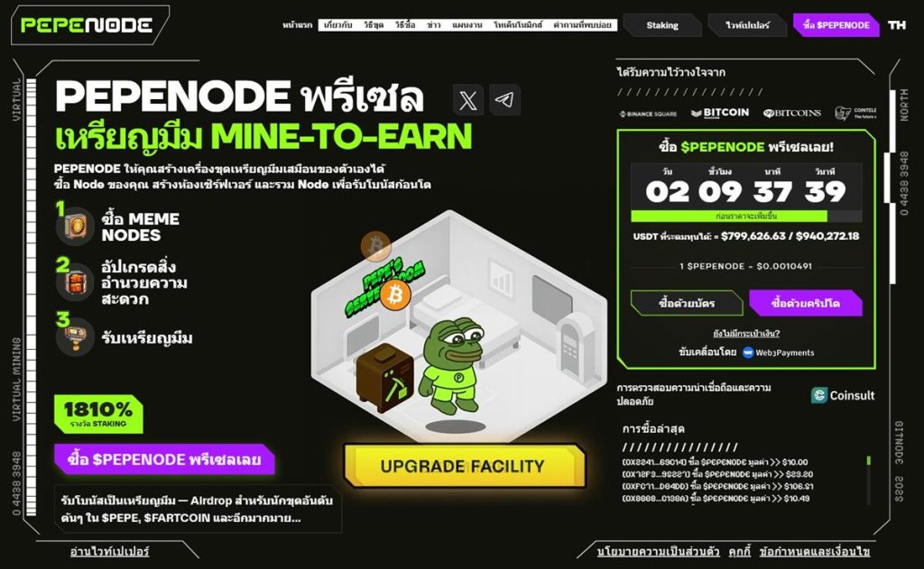 เหรียญมีมใหม่ Pepenode ทุนทะลุ $8.7 แสน! นักขุดกลุ่มแรกเริ่มงานแล้ว