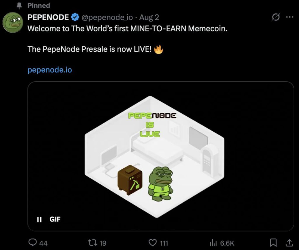 PepeNode ($PEPENODE) เหรียญมีมสาย mine-to-earn ตัวแรกในวงการ กวาดยอดพรีเซลไปแล้วกว่า 500,000 ดอลลาร์ ทั้งที่เพิ่งเปิดตัว