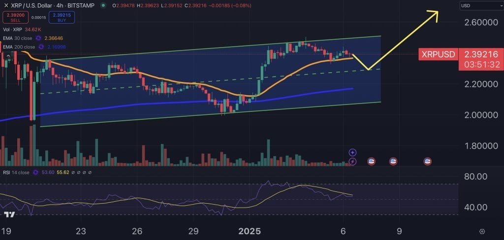 ราคา XRP วันนี้สะท้อนให้เห็นถึงการเติบโตที่อาจจะเกิดขึ้น โดยดูได้จากกราฟ 4 ชั่วโมงที่แสดงสัญญาณเป็นบวก