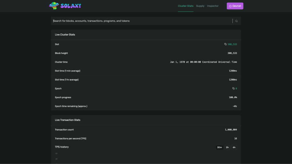 ทีมงานของ Solaxy ได้เปิดตัวเว็บพอร์ทัลใหม่ที่แสดงข้อมูลจาก Testnet แบบเรียลไทม์ โดยมีธุรกรรมเกิดขึ้นแล้วมากกว่า 1 ล้านรายการ