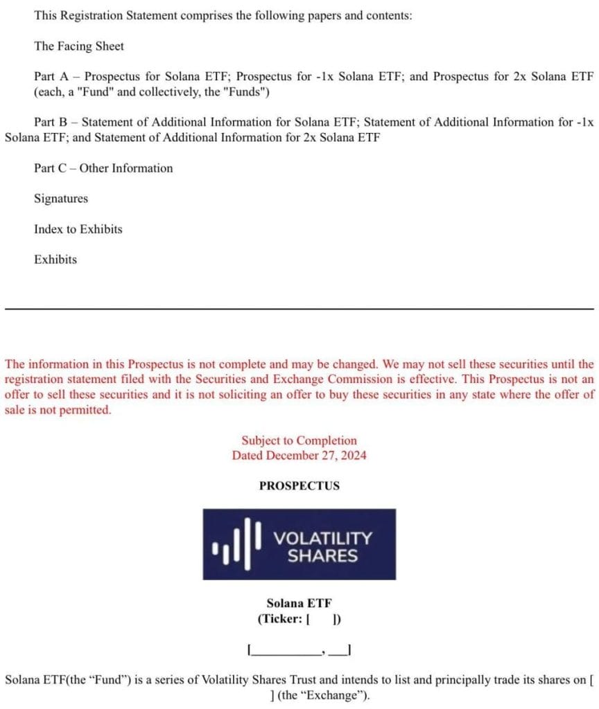 บริษัท Volatility Shares LLC ได้ยื่นเรื่องขออนุญาตต่อ SEC เพื่อจัดตั้งกองทุน Solana Futures ETFโดยมีตัวเลือกเลเวอเรจ 1 เท่า, 2 เท่า และ -1 เท่า หากได้รับการอนุมัติ กองทุน ETF นี้จะทำให้นักลงทุนสามารถทำกำไรได้ทั้งตอนราคาขึ้นและลง