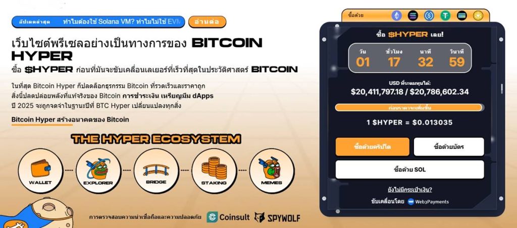 หากคุณต้องการตัดสินใจภายในระยะเวลาอันสั้น อย่าลืมอ่าน บทวิเคราะห์/รีวิว Bitcoin Hyper หรือศึกษาวิธีซื้อ Bitcoin Hyper ด้วยขั้นตอนง่ายๆ เพื่อรวบรวมข้อมูลสำคัญเกี่ยวกับ Bitcoin Hyper