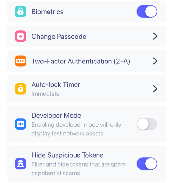 เพื่อปกป้องสินทรัพย์ของคุณ ให้เปิดใช้งานระบบยืนยันตัวตนด้วยไบโอเมตริก เช่น การสแกนลายนิ้วมือหรือ Face ID นอกจากนี้ยังแนะนำให้เปิดใช้งาน TwoFactor Authentication (2FA) เพื่อเพิ่มระดับการป้องกันอีกขั้น