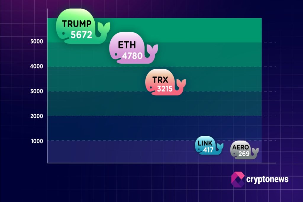 Cryptonews verilerine göre, 50.000 doların üzerindeki büyük işlem sayısı baz alındığında, Official Trump (TRUMP), uzun süredir “ana” altcoin olarak görülen Ethereum’u (ETH) bile geride bırakarak birinci sıraya yerleşti. İlk beşte yer alan diğer token’lar ise Tron (TRX), Chainlink (LINK) ve Aerodrome (AERO) oldu.