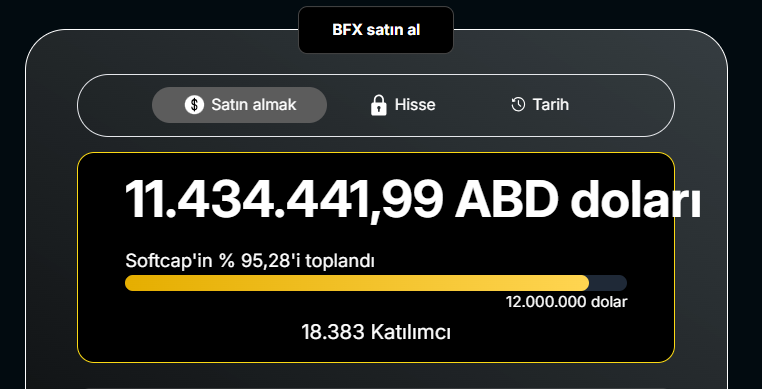 Proje soft cap hedefine henüz ulaşmadığı için, BFX tokeninin büyük ihtimalle 2026’nın başlarına kadar lansman görmeyeceği öngörülüyor.