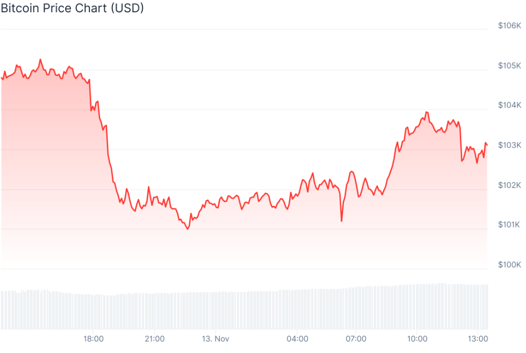 Bitcoin 6 Ekim’de gördüğü 126.080 dolarlık tüm zamanların en yüksek seviyesine kıyasla %18.5 daha düşük işlem görüyor.