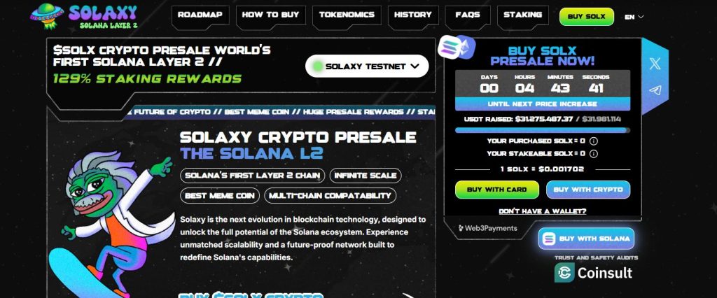 Proje, Coinsult tarafından denetlenmiş durumda ve halihazırda 60 bini aşkın X (eski Twitter) takipçisi ile 11.500’den fazla Telegram abonesine sahip. Artan topluluk ilgisi ve güçlü teknik temeliyle, Solaxy şu anda Solana ekosisteminde en fazla ilgi gören ön satış projelerinden biri konumunda.