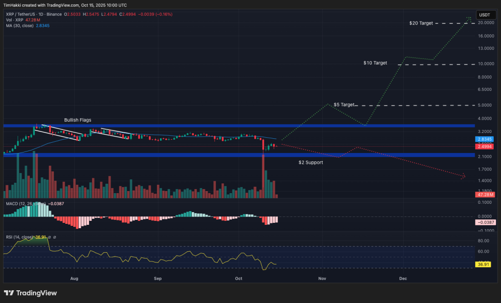 Teknik analiz, XRP’nin yaz ayı grafiklerinde iki boğa bayrağı formasyonu olduğunu ortaya koyuyor. Ekim ortasına kadar ETF onayları gelirse, yenilenen iyimserlik XRP’yi 5–10 dolar aralığına taşıyabilir.