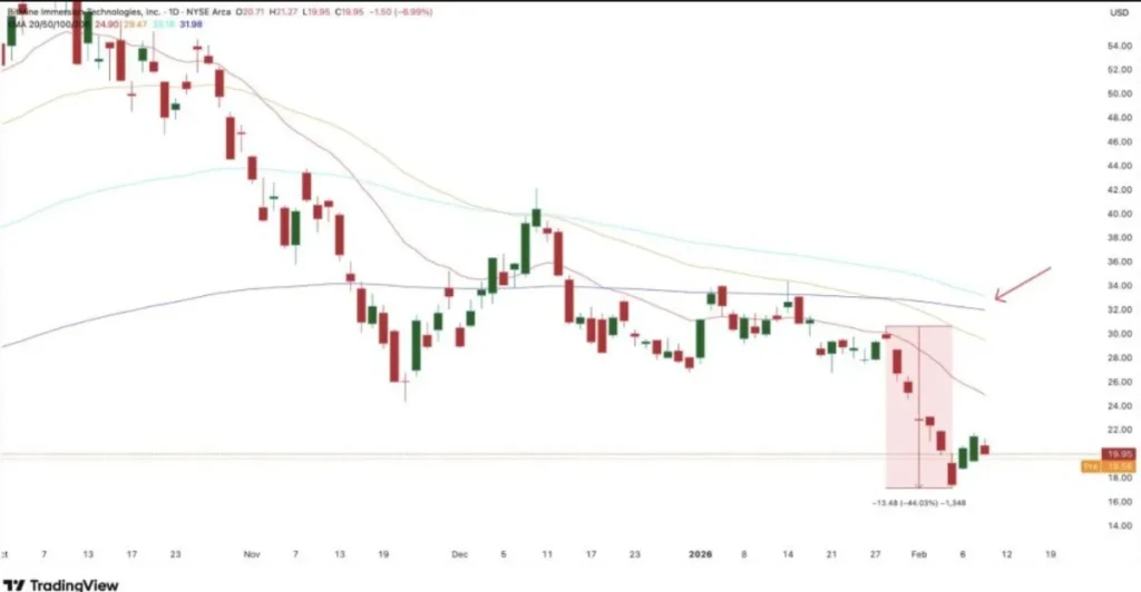 BitMine çevresindeki Ethereum haber akışı da giderek olumsuzlaşıyor. 18 Kasım ile 9 Şubat arasında hisse fiyatı daha düşük tepeler yaptı.
