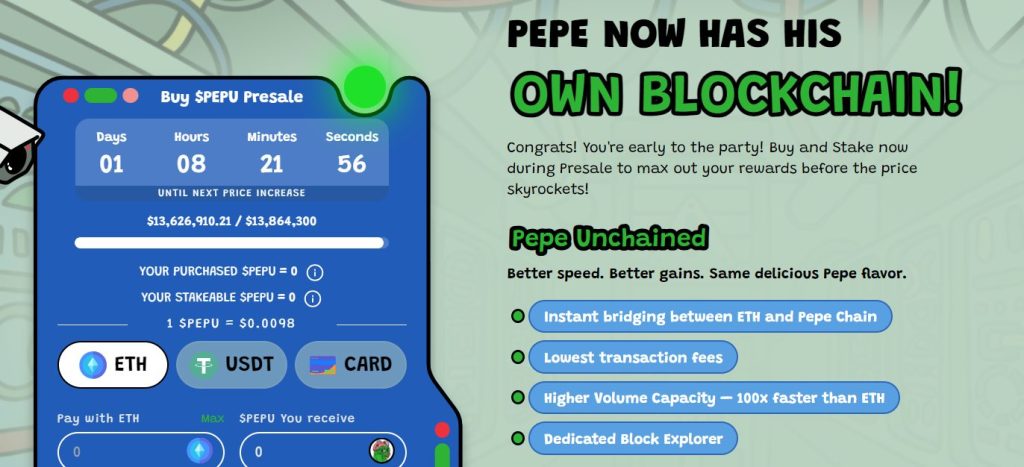 Gelecek vadeden yeni isimlerden olan Pepe Unchained ($PEPU), kayda değer kazançlar sağlama potansiyeliyle giderek daha fazla ilgi çekiyor.