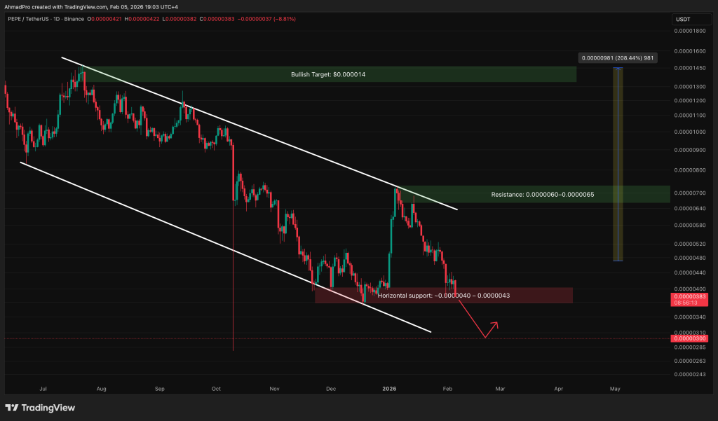 Bununla birlikte PEPE, şu anda 0,0000040 ile 0,0000043 dolar arasındaki yatay destek bölgesinin hemen altında bulunuyor. Bu alan daha önce de tepkileri tetiklemişti, bu da onu yeniden önemli kılıyor.
