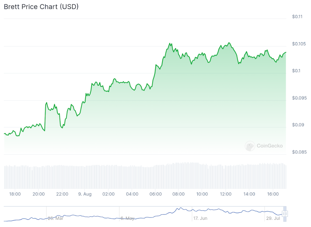Büyük oyuncular olan $DOGE, $PEPE, $WIF ve $TURBO sırasıyla; %4,9, %10, %9,2 ve %0,5 oranında artış gördü. Ancak en büyük kazanan %16,5 oranında yükselen $BRETT oldu.