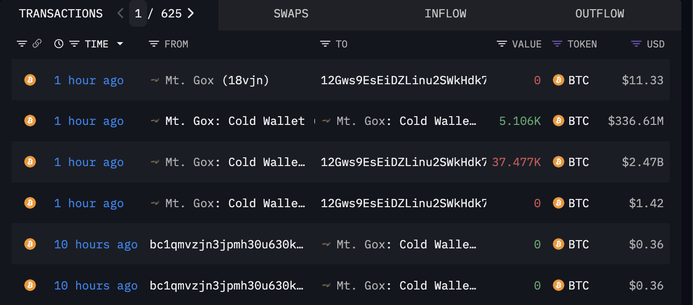 ‘ın raporlarına göre, Mt Gox adlı iflas etmiş kripto para borsası, Çarşamba günü 37.477 Bitcoin‘i (yaklaşık 2,47 milyar dolar değerinde) bir soğuk cüzdandan bilinmeyen bir adrese aktardı. Bu işlem, büyük miktarda Bitcoin’in hareketini içerdiği için dikkat çekici.
