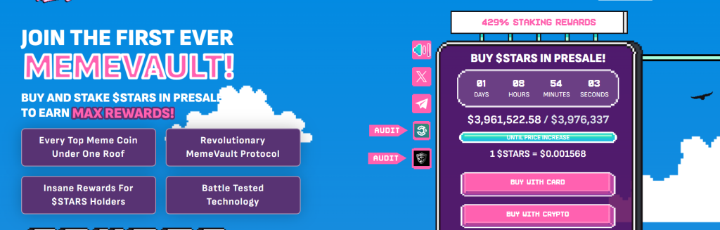 Yatırımcılar, bir sonraki fiyat artışına bir günden az bir süre kala, %429’luk staking ödülleri ile 1 $STARS = 0,001568 dolarlık mevcut orandan yararlanma fırsatı buluyorlar.