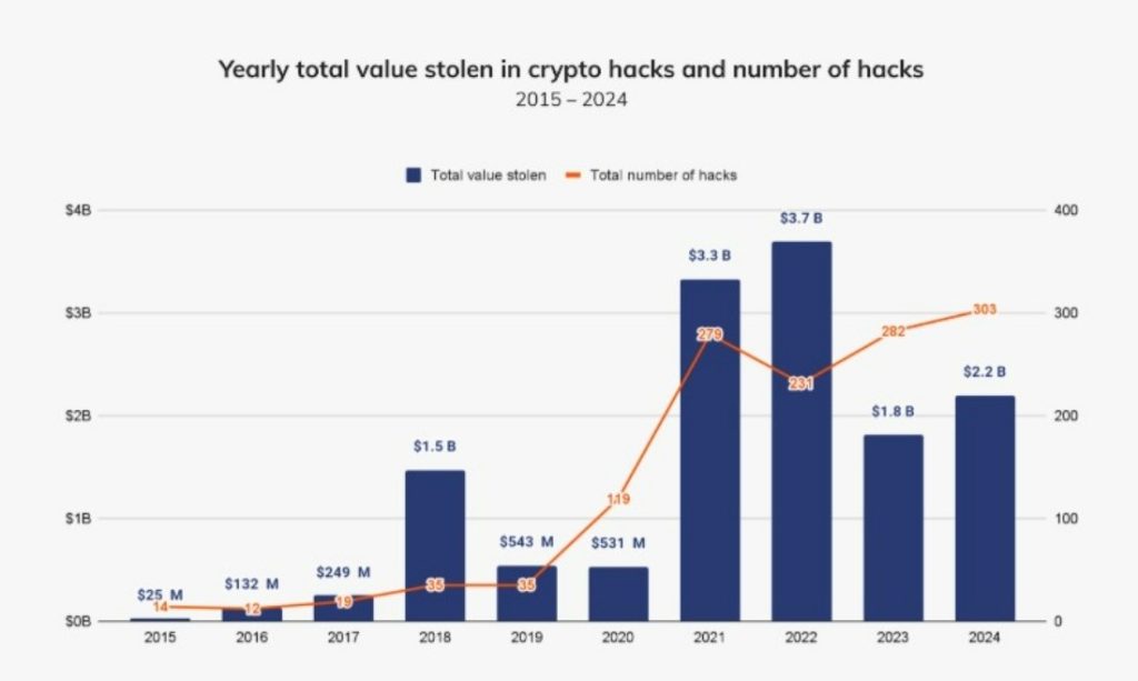 2024 yılı, kripto sektöründe 303 saldırı ve 2,2 milyar dolar kayıpla tarihe geçmişti.