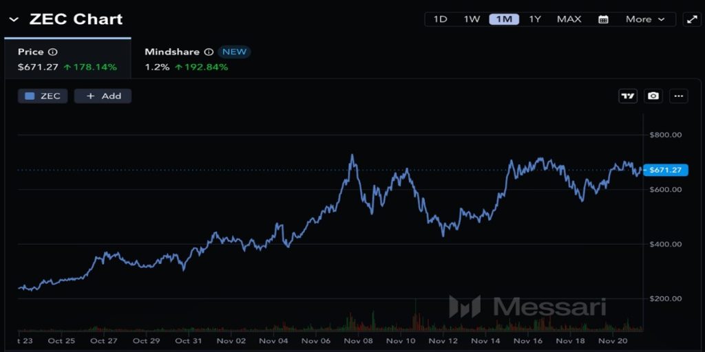 Son bir ayda yaklaşık yüzde 178 yükselen ZEC, ekim başından bu yana yüzde 1.500’ün üzerinde değer kazandı.