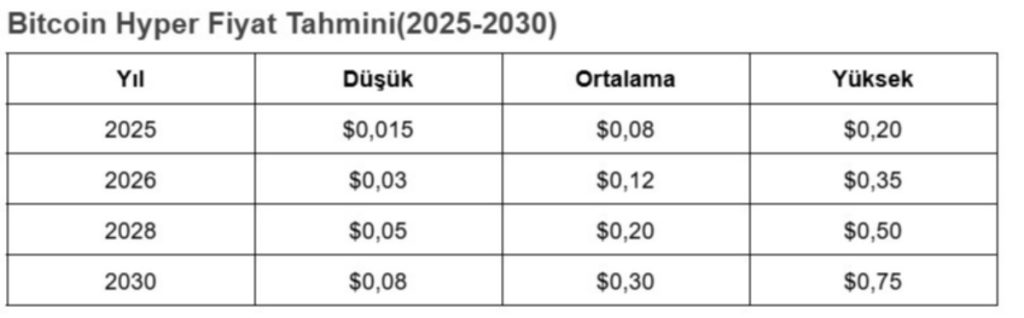 Coinspeaker analisti Filip Stojanovic, HYPER’ın bugün listelense 0,20 dolar seviyesine kadar çıkabileceğini, 2026 hedefinin ise 0,35 dolar olduğunu belirtiyor.