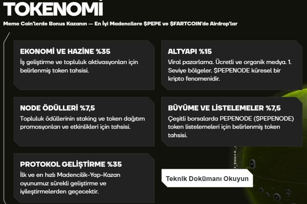 Oyuncular node geliştirmek, sistemi büyütmek ve daha yüksek performans almak için harcadıkları PEPENODE üzerinden yeniden ekosistemde katkı sağlıyor.