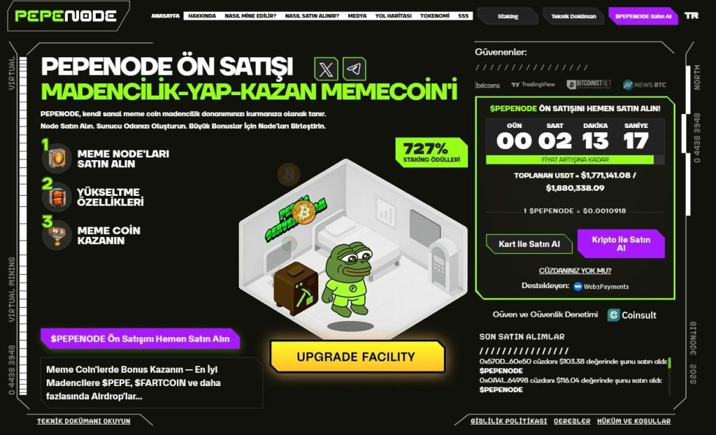 Satın alma işlemleri doğrudan resmi site PepeNode.io üzerinden gerçekleşiyor.