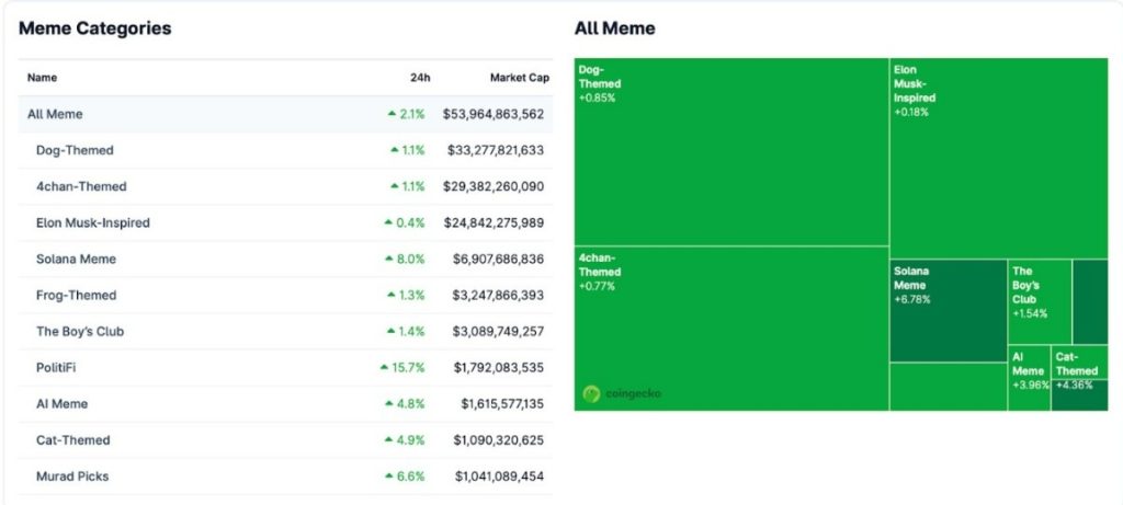Meme coin piyasası genel olarak son 24 saatte %2,1’lik bir toparlanma yaşarken, özellikle PolitiFi kategorisi çok daha güçlü bir ivme yakaladı.