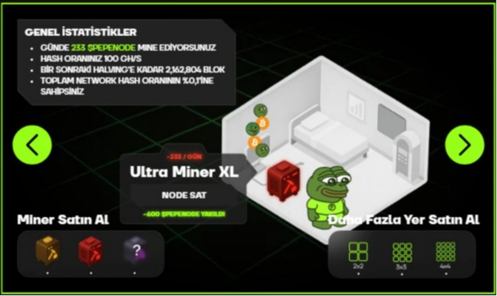 Doğru kombinasyonları kuran kullanıcı daha yüksek üretim yapabiliyor ve bu da PEPENODE tokenı üzerinden kazanca dönüşüyor