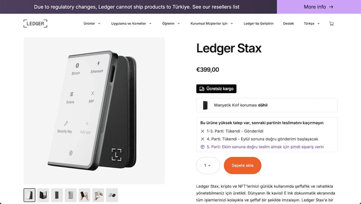 Ledger cihazınızı Amazon satıcılarına güvenmek yerine resmi mağaza üzerinden satın almak en iyisidir. Ayrıca, Ledger web sitesinde listelenen resmi Amazon mağazalarından alışveriş yapmanız önerilir.