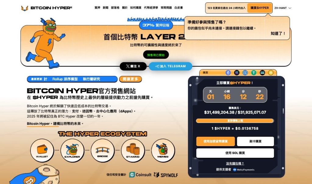 Bitcoin Hyper預售3,148萬美元