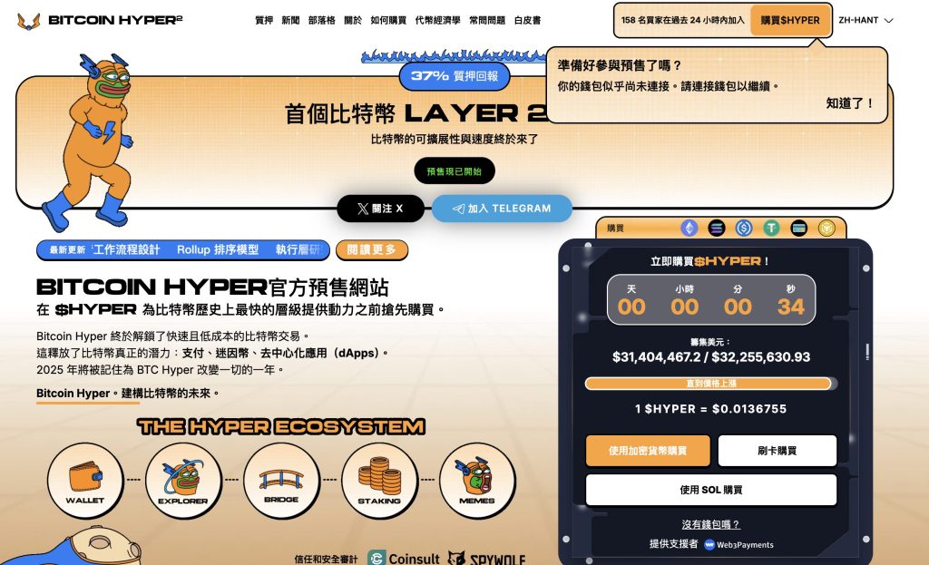 在比特幣約67,500美元附近震盪、以太坊約3,100美元盤整的背景下,部分資金更願意把注意力放在具備可描述用途的基礎設施項目。Bitcoin Hyper以比特幣Layer 2定位、SVM執行能力與1比1橋接機制,嘗試把比特幣帶入更高速的DeFi與應用環境,並透過3140萬美元募資與37%年化質押吸引早期參與。