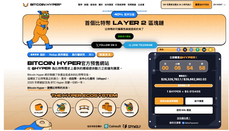 Bitcoin Hyper把自己放在基礎設施的座標上,主張以分層開發擴展Bitcoin的能力,路線圖集中於可擴展性、互操作性,以及與更廣泛Bitcoin生態系統相連的支援工具。根據文本資訊,Bitcoin Hyper在預售中已籌集超過3130萬美元,顯示其吸引的多是時間尺度較長、願意等待交付的參與者,這類資金通常更重視開發節奏是否穩健。
