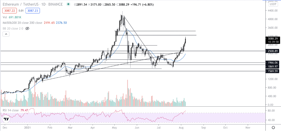 Bitcoin failed 3 times in the past few weeks in breaking the big resistance at $42,000, but finally, it overcame the heavy resistance zone. It can be argued that this rally was started by Ethereum, as the London Hard fork was implemented on the Ethereum blockchain.