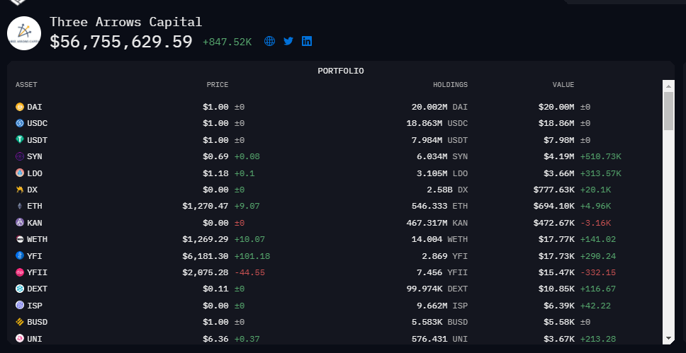 At press time, 80% of the assets in the main 3AC wallet are stablecoins — DAI, USDC, and USDT.