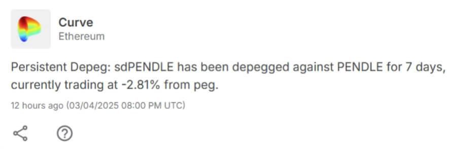 And it’s not just fiat stables. Staked tokens like sdPENDLE have also shown dislocations in Curve. When these wrappers slip in price versus their underlying assets, their share in pools can balloon, a signal that LP risk is rising fast.