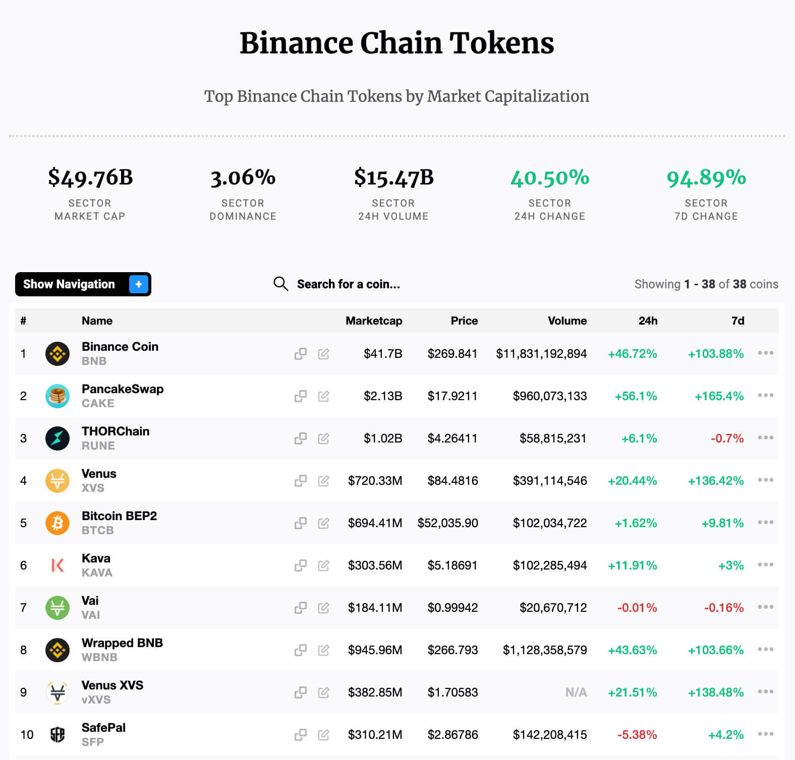The Binance Chain sector as a whole is up 96% over the past seven days.