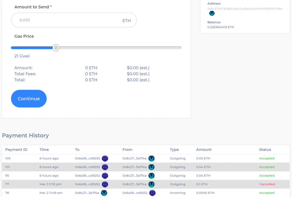 Tabby Pay offers users a simple web-based UI that allows them to send Ether payments to anybody using a Web3 enabled wallet. Ether payments made via the platform are routed via a smart contract along with attached data that ensures only the intended wallet is able to accept the transaction.