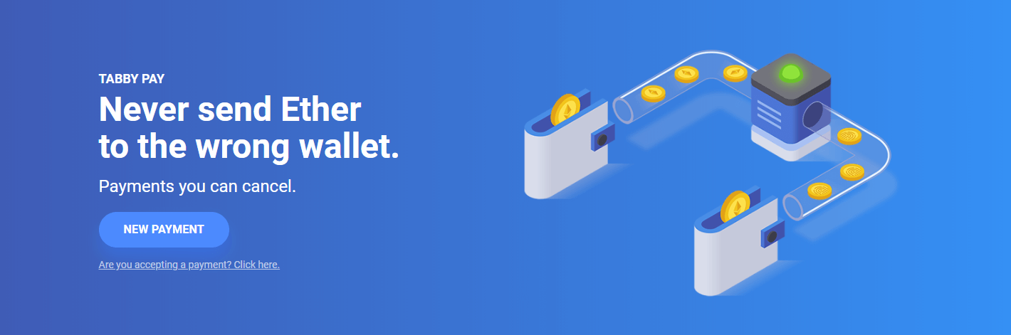 The Tabby Pay system utilizes a two-step method that requires payment recipients to visit the Tabby Pay website in order to claim it. If a user sends Ether to the wrong wallet address, they are able to cancel the payment before it finalizes.