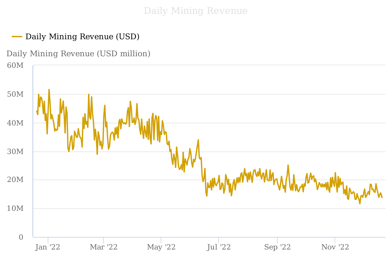 In the last 12 months, miner revenue has decreased by 72.34 %, according to data obtained from Braiins.com.