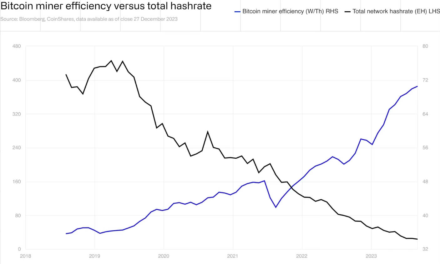 This translates to fewer payments for the same amount of computational exertion and energy consumption. Yet, this would exert a negative impact, to the point of bankruptcy, only if Bitcoin price were to fall under $40k, according to CoinShares’ report.