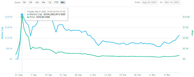 Within the first months of the DeFi Yield Farming craze, the Compound platform with its COMP token rose 300% in value, only to halve in value a month later.