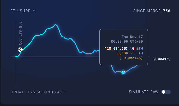 Ethereum (ETH) recently became the most deflationary it had historically ever been amid the FTX collapse, reaching a deflationary percentage of -0.00514%, but as of Nov 29, ETH has lost almost all deflationary gains.