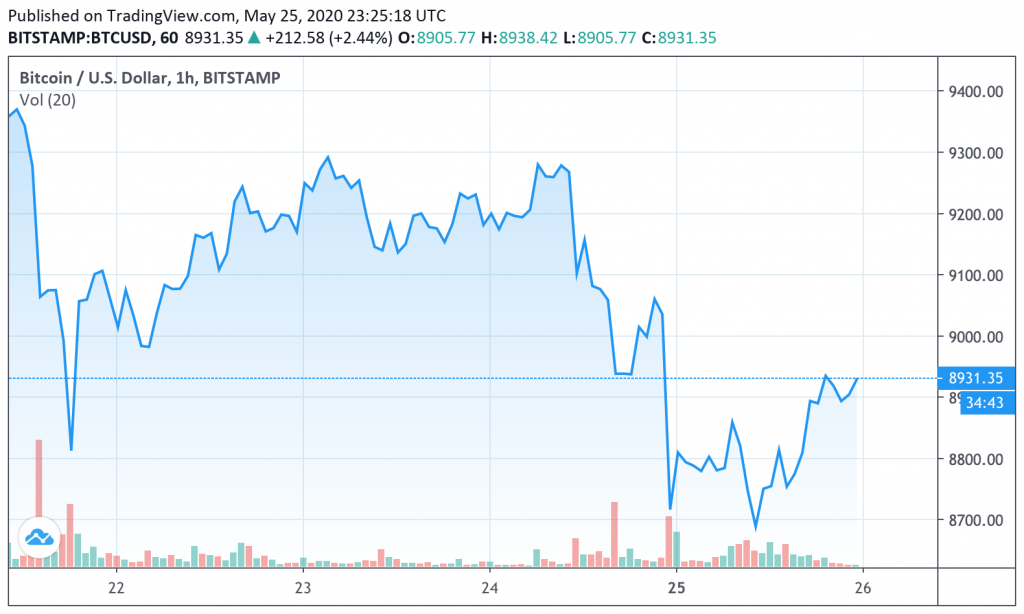 At the time of writing, Bitcoin is trading down just under 1 percent at its current price of $8,905. This marks a notable rebound from lows within the $8,600 region that was set during a sharp decline yesterday.