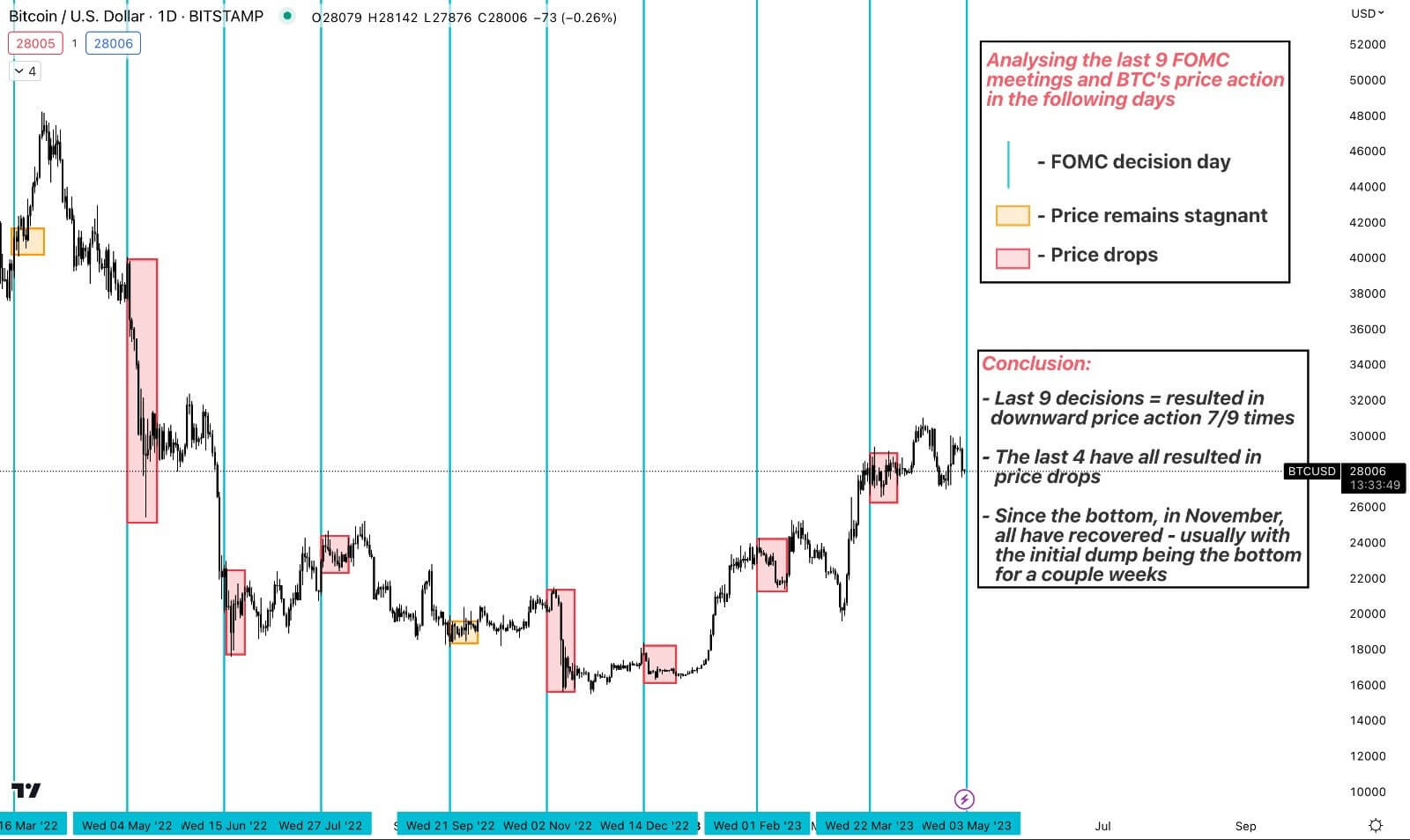 - However, the FOMC meeting has been historically negative for Bitcoin price action.
