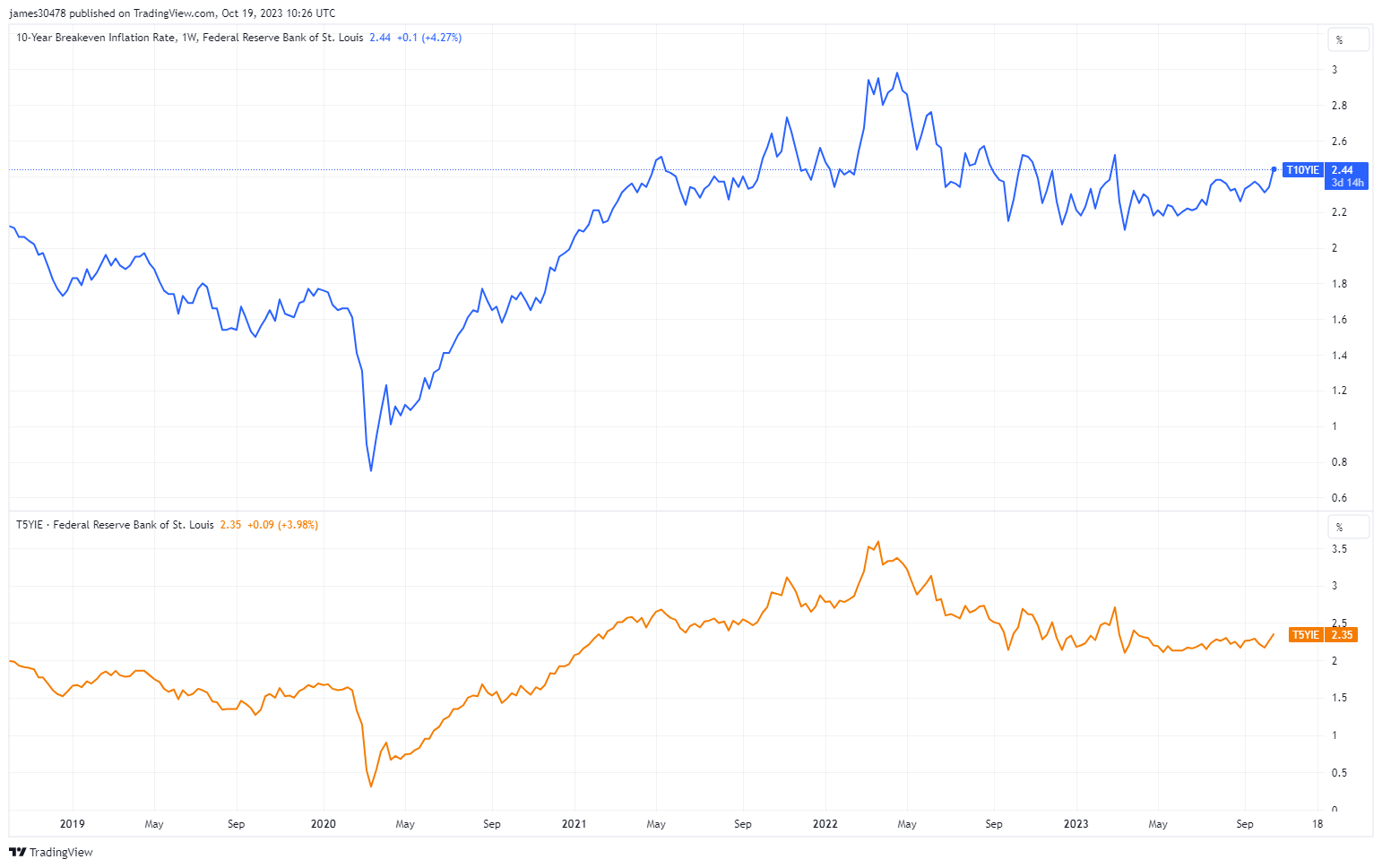 The 10-year breakeven inflation rate has reached the second-highest level in 2023