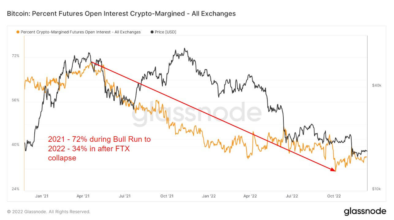 Percent Futures Open Interest Crypto-Margined: (Source: Glassnode)