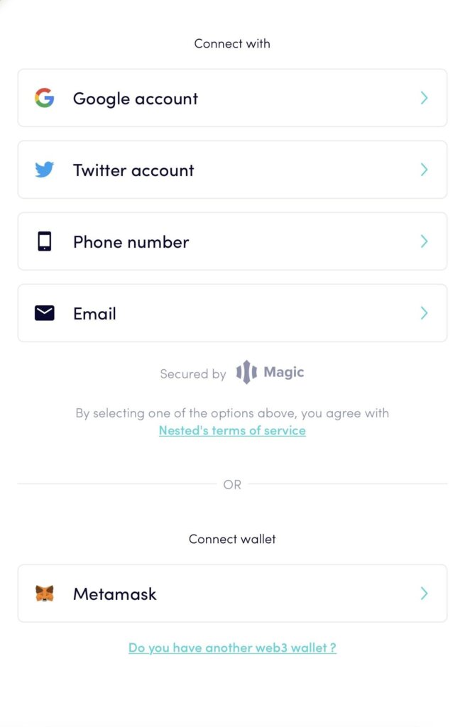 On Nested, users won’t be disoriented. Users can log in to the platform as on any centralized application: only a Twitter/Google account, a mail, or a phone number is needed!'
