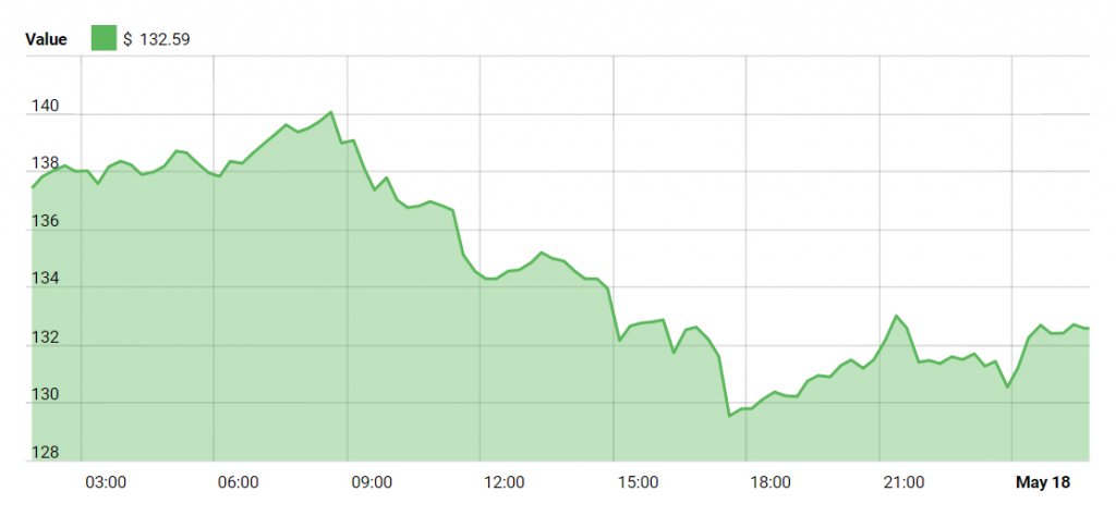 Litecoin is currently trading for about $132 and incurred a two-dollar rise since our previous price discussion.