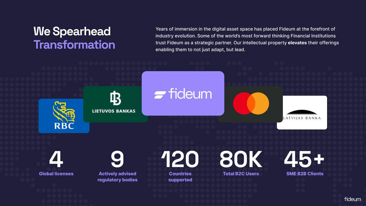 Fideum is a fintech company focused on accelerating the digital transformation of financial institutions, banks, and small—to medium-sized enterprises (SMEs) through its eponymous blockchain infrastructure. With the strategic backing of Mastercard Europe and a recent win at the Mastercard Lighthouse program, Fideum aims to position itself as a reliable partner for entities seeking to delve into and capitalize on digital assets.