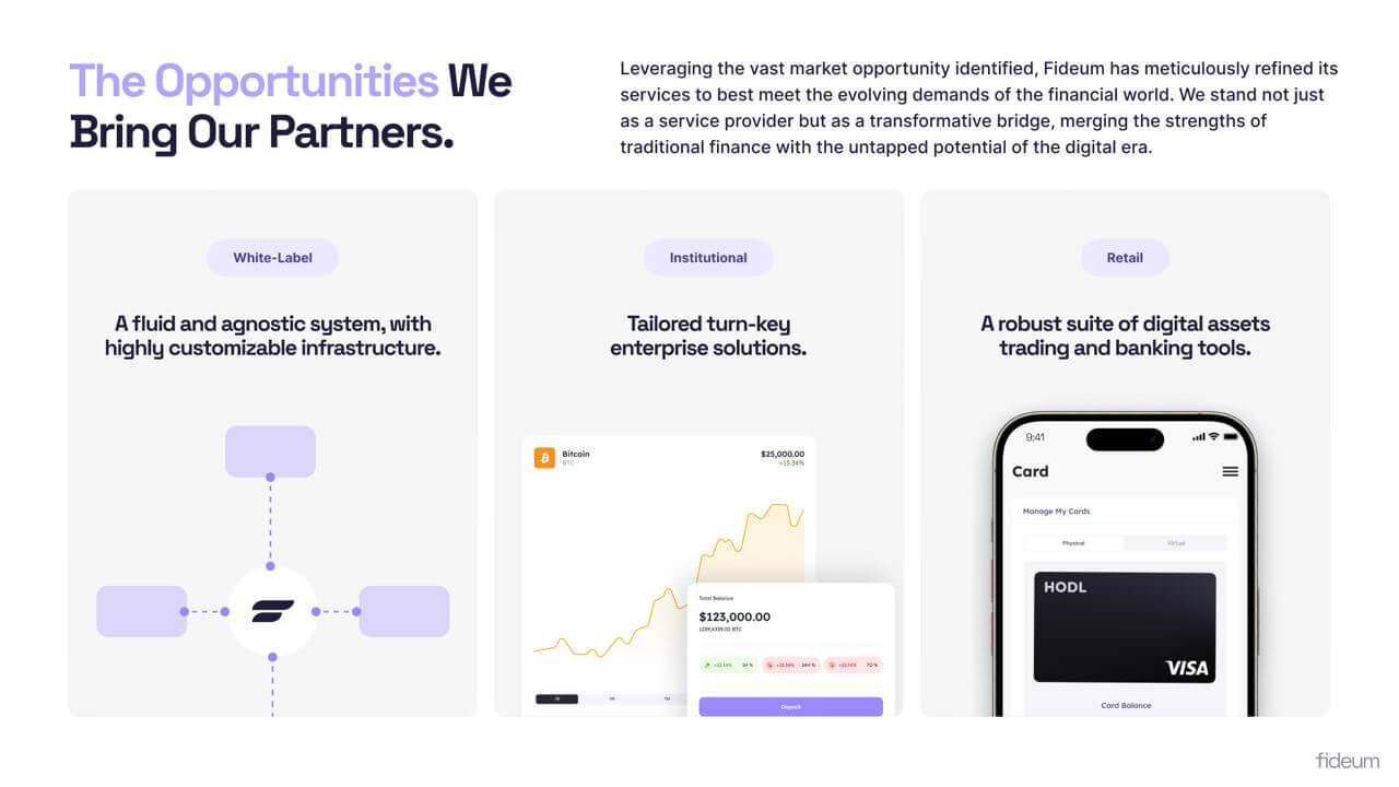 Fideum operates at the intersection of traditional finance (TradFi) and DeFi, focusing on providing tools for financial institutions’ digital transformation.